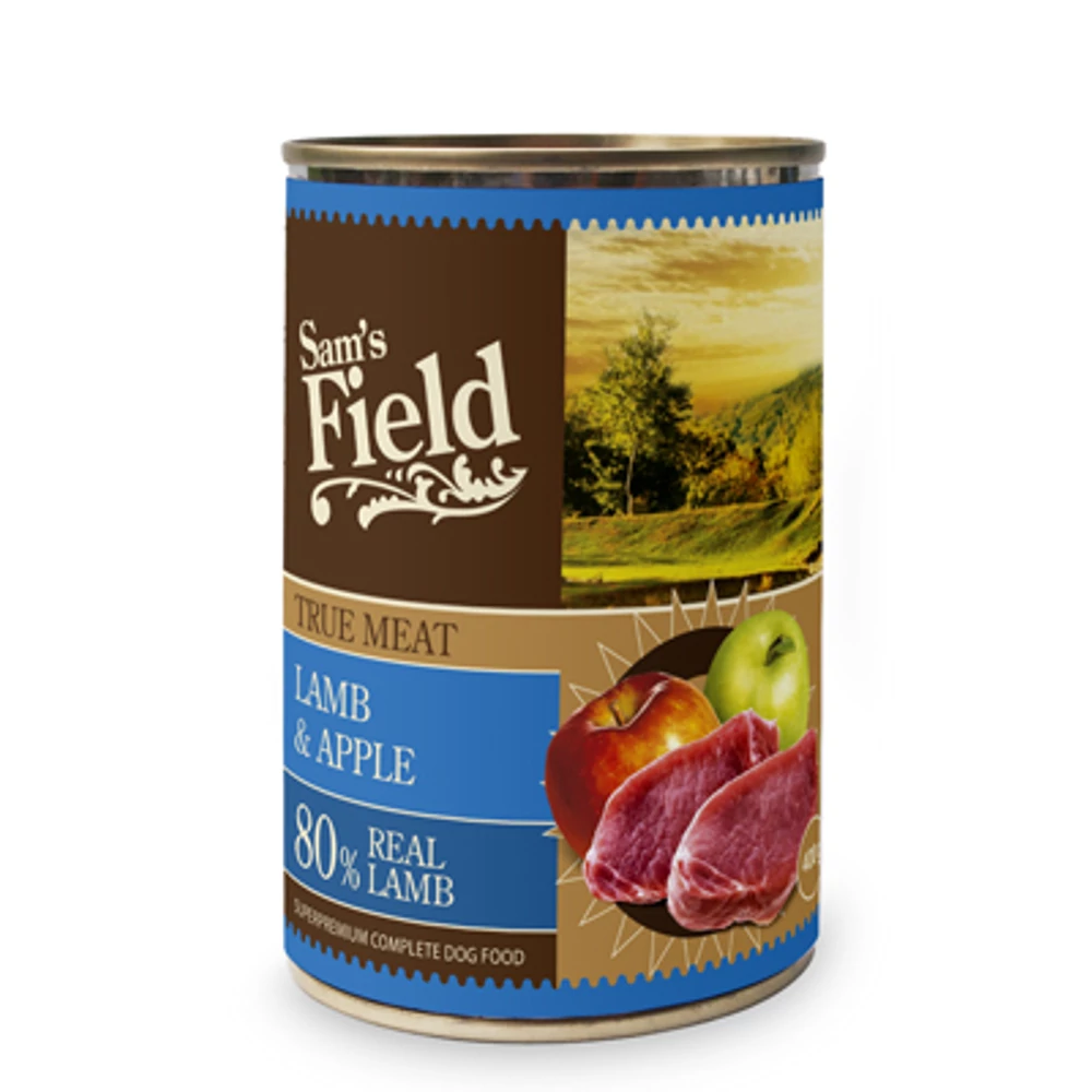 80% bárányhús, 10% alma, 8,5% húsleves, 1% ásványi anyag, 0,5% lazacolaj