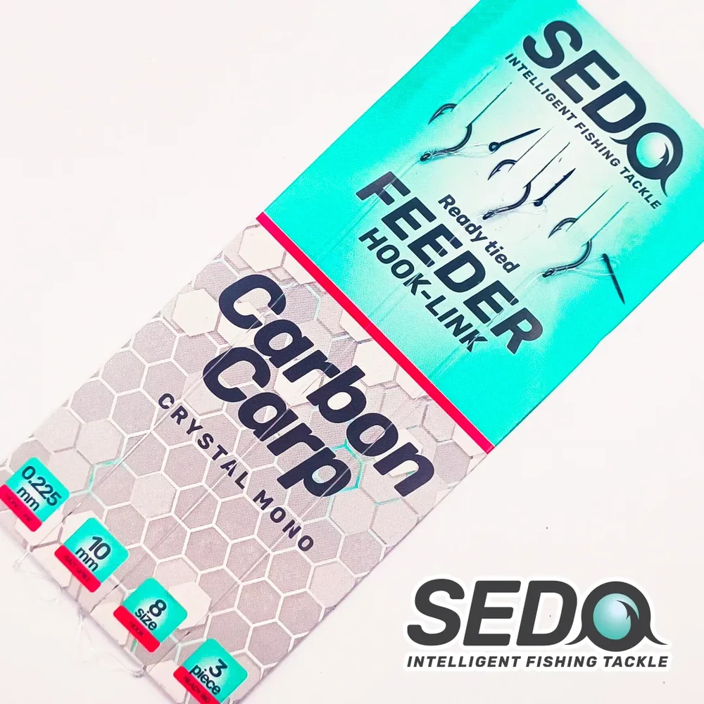 Carbon Carp Crystal Monofil Feeder rig - Előkötött Feeder előke – Erősített anyagszerkezet, befelé hajlított horogheggyel – Extrém hegyes, – Ultra Light – Speciális horogforma a tökéletes akadás érdekében – Készre kötött feeder előke – SEDO Aqua Crystal Monofil Damil , 10mm csali tüske - Speciális hurkos Feeder csalitüske kötés - A csali szabad mozgása a végszereléken – 3db/cs Egy igazi kuriózummal horgászhatunk ha ezt a horog típust választjuk. Speciálisan kiképzett horogalak szinte azonnal akad a halak szájában ezért szinte kifújhatatlanná válik a halak számára. Ez még több és hevesebb kapást illetve a horgászat folyamán több halat és fárasztást jelent. Egészen az apróbb feeder csalik is már kiemelik a horgot ezáltal a Critical balance csalizási módot könnyen elérhetjük vele. Prémium alapanyagokból épített készre kötött feeder előke hatékony és eredményes horgászathoz segíti használóját. SEDO Aqua Crystal monofil zsinórból készítjük előkéinket, az akadás biztonságát és szögét vékony szilikon csővel segítjük amit a horog szárára húztunk. A csalitüskét egy speciáis horog alatti hurokkal rögzítjük mely tökéletes és szabad mozgást ad csalinknak! Csalitüske szakállal ellátott, bármilyen csalit biztonsággal fűzhetünk rá , stabil tartást ad dobáskor és kapáskor.