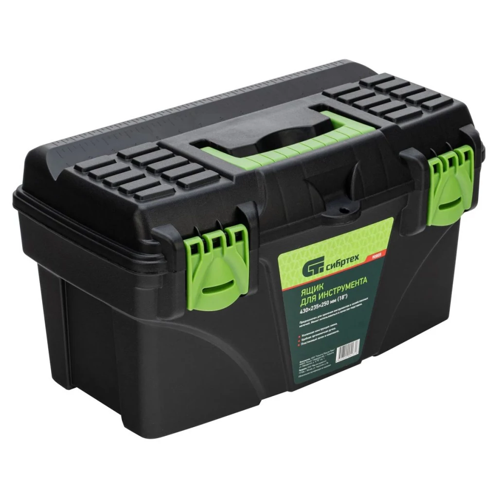 A mûanyagból készült, 430x235x250 mm méretû (18 hosszúságú) Sibrtech szerszámosláda egy kényelmes tároló szerszámok, háztartási cikkek, horgászfelszerelések, autós szerszámok vagy egyéb eszközök számára. A fedélen centiméterben és hüvelykben mérõskála található, így akkor is mérek, ha nincs kéznél mérõszalag. A doboz kiválóan használható utazásnál, horgászatnál éppúgy, mint házkörüli munkáknál vagy mûhelyben szerszámok eszközök tárolásra.ElõnyökMegerõsített kialakítás - a zár és a felsõ fedél 3 soros zsanérokra van felszerelve, így a doboz jelentõs súlyt bír el.A belsõ tér racionális kihasználása - a kivehetõ fogantyús tálca kényelmes apró tárgyak tárolására.Tartósság - a merevítõ bordákkal megerõsített tok ellenáll az ütéseknek vagy leesés következtében fellépõ sérüléseknek.Kényelmes mozgás - a fedél ergonomikus fogantyúval rendelkezik.