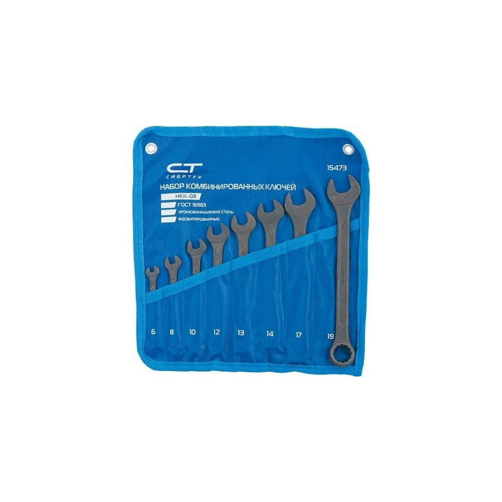 A Sibrtech 15473 kombinált csavarkulcsok, amelyek CrV acélból készültek, foszfátozott, GOST 16983, 8 db, 6-19 mm-es kötőelemek kicsavarására és csavarására tervezték, 6-19 oldalas vagy 12 oldalas fejprofillal. A gyűrűs torok belső felülete 12 arccal lehetővé teszi, hogy a kulcsot csak 30 fokkal forgassa el, ami megkönnyíti a szűk körülmények között végzett munkát. A kulcsokat lakatos és szerelési munkákhoz használják, hasznosak lesznek az építésben, a javítások során, és hasznosak lesznek otthon vagy a garázsban is. A szerszámokat nagy szilárdság jellemzi, mivel a króm-vanádiumcsoport acélból készülnek a forró kovácsolás technológiája szerint.A kulcsokat edzették és edzették, a munkadarabok keménysége 42-47 HRC, így ellenállnak a kopásnak és a terhelésnek.A hosszú élettartamot egy foszfátbevonat biztosítja, amely megvédi a termékeket a korróziótól.