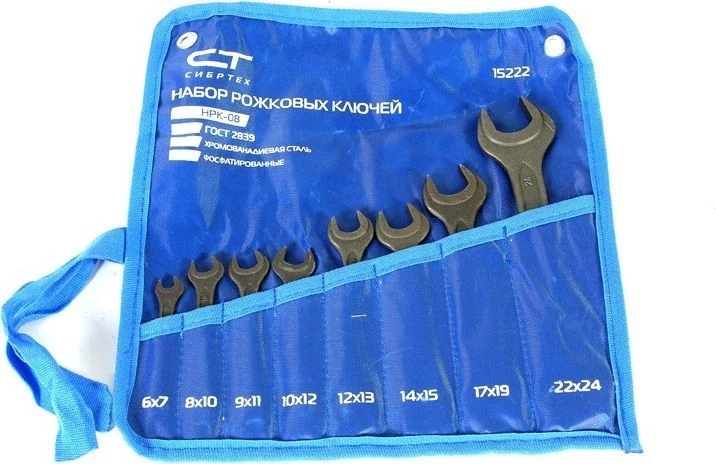 A Sibrtech 15222, GOST 2839 foszfátozott csavarkulcsok 8 CrV acélból készült szerszámot tartalmaznak, amelyeket 6-24 mm átmérőjű hatszögletű menetes rögzítők rögzítésére és szétszerelésére használnak. Az eszközök hasznosak lesznek a szervizközpontban, az autójavító műhelyben, a berendezések telepítése során, és hasznosak lesznek otthon vagy az országban is. Előnye:Szilárdság és ellenállás a mechanikai terhelésekkel szemben - a kulcsok forró kovácsolással készülnek a króm-vanádiumcsoport kovácsolt acélból, lágyították, edzettek és később felszabadultak.Megnövekedett kopásállóság - a munkadarabok keménysége 42-47 HRC, amely megfelel a GOST követelményeinek.Tartósság - a szerszámok foszfátosak a korrózió elleni védelem érdekében.