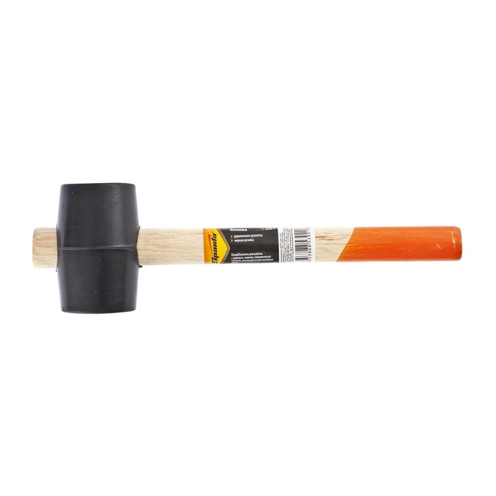 Fekete gumi fejjel ellátott kalapács, amelynek keménysége 80 egység (Shore A. szerint). A hagyományos kivitelnél a szerszám különbözik a fej rögzítésében, az átmenő nyél nincs rejtve, hanem túllóg.A fából készült kétszínű fogantyút színtelen lakk védi a kiszáradástól.