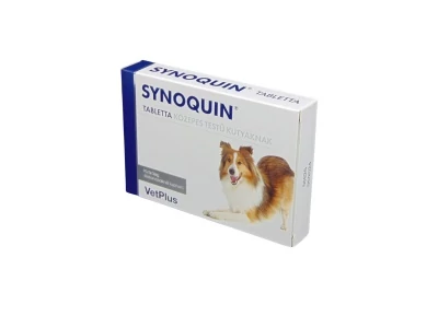 Számos klinikai vizsgálat bizonyítja a Synoquin hatékonyságát az izületi gondokkal küzdő kedvenceink számára. Méret specifikus kiszerelése lehetővé teszi az egyszerű adagolást, ízesített tablettái pedig jutalomfalatként adhatók, megkönnyítve ezzel a gazdi feladatát.
