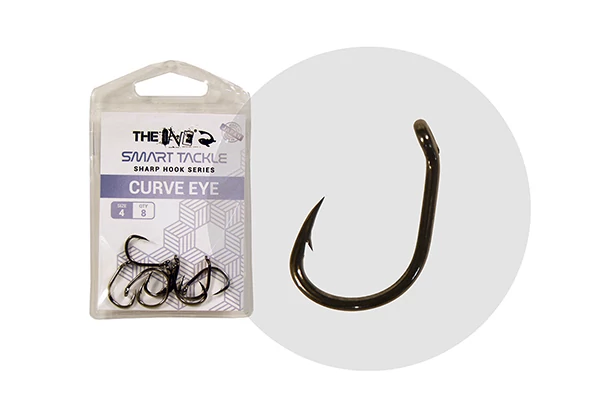 A THE ONE CURVE EYE egy öblös, tűéles egyenes heggyel és befordított szemmel rendelkező horog.