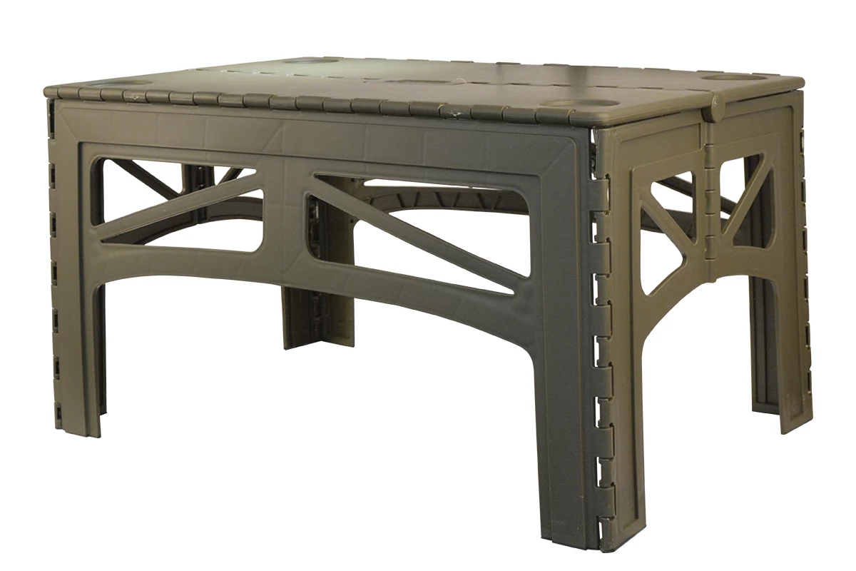 Praktikus, összecsukható, ezért könnyen szállítható, de nagy teherbírású és viszonylag nagy méretű asztal, sokféle felhasználhatósággal.