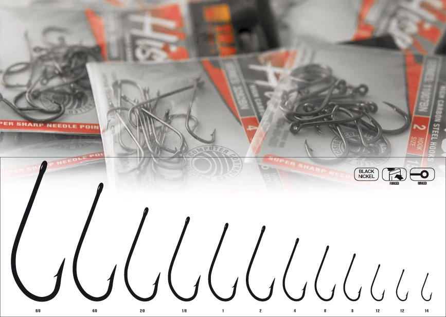 Az élő csalihalas horgászat nélkülözhetetlen horogtípusa. Magas széntartalmú, kopásálló, ellenálló fekete nikkel bevonattal ellátott füles horog. A  különféle csalik, csalihalak biztonságos felkínálásához méretezett horoghegy, ill. szakállméret a Trabucco HISASHI O’SHAUGHNESSY típusú horgok titka. Széles mérettartománya akár kisebb ragadozók, mint pl. a sügér, domolykó, de akár a süllő, csuka, vagy harcsahorgászok igényeit is kielégíti.