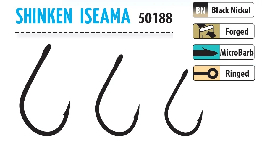 A TRABUCCO SHINKEN ISEAMA horog egy szupererős mikroszakállas, kovácsolt füles horog. Igazi mindentudó horog. Egyaránt használható sós és édesvízben. A kisebb méretei a feeder horgászok horgos dobozaiból sem hiányozhatnak.