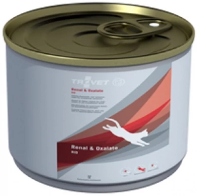 TROVET Renal & Oxalate Diet (RID) – Teljes értékű, vesebetegségekben szenvedő macskák részére kifejlesztett konzervtápA vesék két fő funkciója a szűrő és kiválasztó funkció, melyek során a szervezet számára feleslegessé, sőt károssá váló salakanyagokat (fehérje bomlástermékeket, foszfátokat) a vérből kiszűri és eltávolítja, valamint a fontos vitaminokat és ásványi sókat visszatartja. Ha a kiválasztó funkció károsodik, vagy megszűnik, az a szervezet mérgezéséhez vezet. A szűrő funkció károsodása esetén a szervezet fontos sókat és tápanyagokat, valamint folyadékot veszít. A súlyos vesekárosodás tünetei már csak akkor jelentkeznek, amikor a vese állományának több mint 75%-a már károsodott. Az első tünetek jelentkezésekor (megemelkedett folyadékfogyasztás) minél hamarabb forduljunk állatorvoshoz.A TROVET RENAL & OXALATE csökkentett fehérjetartalma révén tehermentesíti a veséket, ezek a fehérjék azonban magas biológiai értékűek, tehát fedezik a szervezet aminosav igényét. A jelentősen lecsökkentett foszformennyiség elősegíti a veseműködés további romlásának megelőzését. Az ásványi anyagok, vitaminok mennyisége szintén a károsodott veseműködésű állatok megváltozott igényeihez igazított. Kálium citrátot tartalmaz, így megelőzi a vizelet túlzott savasodását, ezáltal az oxalát kristályok képződését gátolja. Használható urát, cisztin és oxalátképződés megelőzésére, és minden olyan esetben ahol a vizelet lúgosítására van szükség (pH- csökkentés).Beltartalmi értékek:Nyers fehérje 6.00%, Nyers zsír 8.00%, Nyers Rost 0.40%, Nyers hamu 1.30%, Kalcium 0.14%, Foszfor 0.008%, Nátrium 0.16%, Kálium 0.21%, A vit. 1200IE/kg, D3 vitamin 150IE/kg, E vit. 100mg/kgMetabolikus energia:4.90MJ/kg