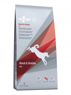 TROVET Renal & Oxalate Diet (RID) – Teljes értékű, vesebetegségekben szenvedő kutyák részére kifejlesztett szárazeledelA vesék két fő funkciója a szűrő és kiválasztó funkció, melyek során a szervezet számára feleslegessé, sőt károssá váló salakanyagokat (fehérje bomlástermékeket, foszfátokat) a vérből kiszűri és eltávolítja, valamint a fontos vitaminokat és ásványi sókat visszatartja. Ha a kiválasztó funkció károsodik, vagy megszűnik, az a szervezet mérgezéséhez vezet. A szűrő funkció károsodása esetén a szervezet fontos sókat és tápanyagokat, valamint folyadékot veszít. A súlyos vesekárosodás tünetei már csak akkor jelentkeznek, amikor a vese állományának több mint 75%-a már károsodott. Az első tünetek jelentkezésekor (megemelkedett folyadékfogyasztás) minél hamarabb forduljunk állatorvoshoz.A TROVET RENAL & OXALATE csökkentett fehérjetartalma révén tehermentesíti a veséket, ezek a fehérjék azonban magas biológiai értékűek, tehát fedezik a szervezet aminosav igényét. A jelentősen lecsökkentett foszformennyiség elősegíti a veseműködés további romlásának megelőzését. Az ásványi anyagok, vitaminok mennyisége szintén a károsodott veseműködésű állatok megváltozott igényeihez igazított. Kálium citrátot tartalmaz, így megelőzi a vizelet túlzott savasodását, ezáltal az oxalát kristályok képződését gátolja. Használható urát, cisztin és oxalátképződés megelőzésére, és minden olyan esetben ahol a vizelet lúgosítására van szükség (pH- csökkentés).Beltartalmi értékek:Nyers fehérje 11.50%, Nyers zsír 17.00%, Nyers Rost 2.30%, Nyers hamu 6.20%, Kalcium 0.80%, Foszfor 0.40%, Nátrium 0.10%, Kálium 0.50%, A vit. 20000IE/kg, D3 vitamin 2000IE/kg, E vit. 200mg/kgMetabolikus energia:15.6MJ/kg