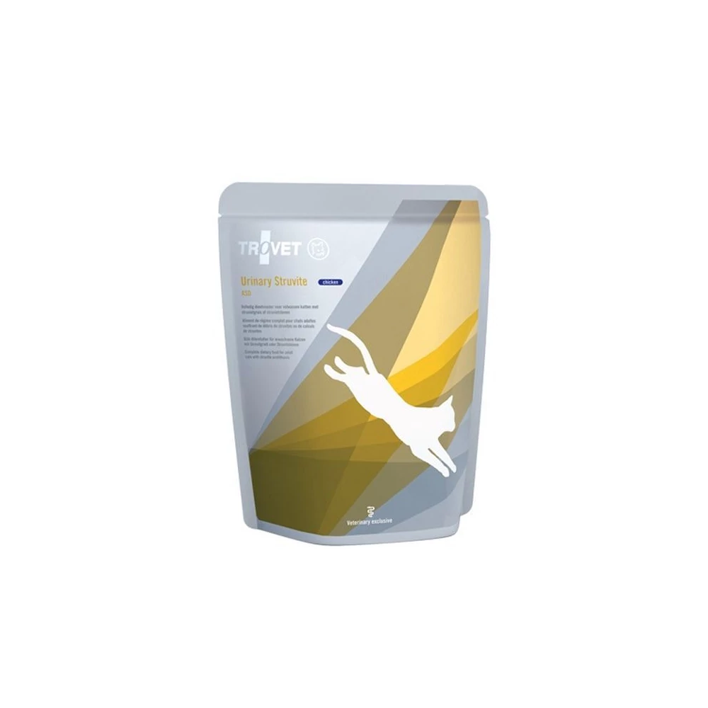 A Trovet ASD a macskák alsó húgyúti szindrómájának és struvit húgykövességének diétás kezelésére kifejlesztett teljesértékű táp. Összetétele savas vizelet kialakulásának kedvez, csökkentve ezáltal a struvit kristályok képződésében szerepet játszó ásványi anyagok koncentrációját. Mivel a felnőtt macskák táplálékigényeit teljes mértékben kielégíti, állatorvosi felügyelet mellett, hosszú időn át folyamatosan etethető. Javallatok: - Különösen javasolt macskák alsó húgyúti szindrómájának és struvit eredetű húgykövességének diétás kezelésére, melynek célja, hogy savas kémhatású vizelet biztosításával a struvit kristályok oldékonyságát növelje és csökkentse a magnézium és foszfátionok koncentrációját. - Mivel a vizelet kémhatása befolyásolja a húgyúti fertőzések kialakulásának esélyét, így a táp etetése visszatérő húgyhólyaggyulladás esetében is ajánlott. A fertőző eredetű gyulladás esetében természetesen célzott antibiotikumkezelésre is szükség van. Ellenjavallatok: - Oxalát kőképződésre való hajlam esetén - Etetése nem ajánlott vesebetegség esetén - Hatását kölyökmacskákon nem vizsgálták, így 6 hónaposnál fiatalabbaknak sem Adagolási útmutató (g/nap): Testsúly (kg) Min (g) Max (g) 2 145 170 3-4 210 250 5-6 285 340 Tárolás: Száraz, hűvös helyen. Felbontás után a csomagot mindig gondosan zárja vissza, konzervek esetében a dobozból kivéve egy tiszta edényben hűtőszekrényben 1-2 napig tárolható. Szobahőmérsékletre melegítve kínáljuk az állatnak. Alapanyag: Csirke Állat: Macska Típus: Konzerv, nedvestáp Életkor: Felnőtt (Adult) Specialitás: Vizeletsavanyító Testméret: Univerzális Származási hely: Hollandia VET – PET Állatorvosi (VET) MINŐSÍTÉS PRÉMIUM MINŐSÉGŰ ÁLLATELEDEL
