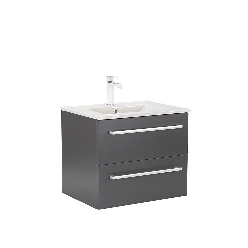 A Vario Clam 60 komplett fürdőszobabútor egy stílusos és praktikus választás modern fürdőszobához. Kompakt méretei ideálisak kisebb és közepes méretű fürdőszobákba is, és a fém fogantyú profil patinás hatást, az antracit-antracit színű dizájn elegáns megjelenést kölcsönöz a térnek. A csillapítós fiókzáródás és a felfüggesztett kivitel a kényelmet és könnyű tisztántartást szolgálja, míg a minőségi anyagok hosszú élettartamot biztosítanak.
