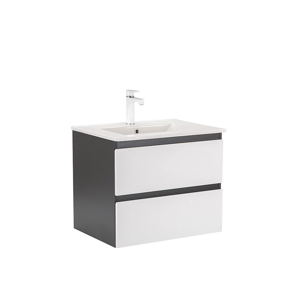 A Vario Forte 60 komplett fürdőszobabútor egy stílusos és praktikus választás modern fürdőszobához. Kompakt méretei ideálisak kisebb és közepes méretű fürdőszobákba is, a 45 fokos élzáródás modern hatást, az antracit-fehér színű dizájn elegáns megjelenést kölcsönöz a térnek. A csillapítós fiókzáródás és a felfüggesztett kivitel a kényelmet és könnyű tisztántartást szolgálja, míg a minőségi anyagok hosszú élettartamot biztosítanak.
