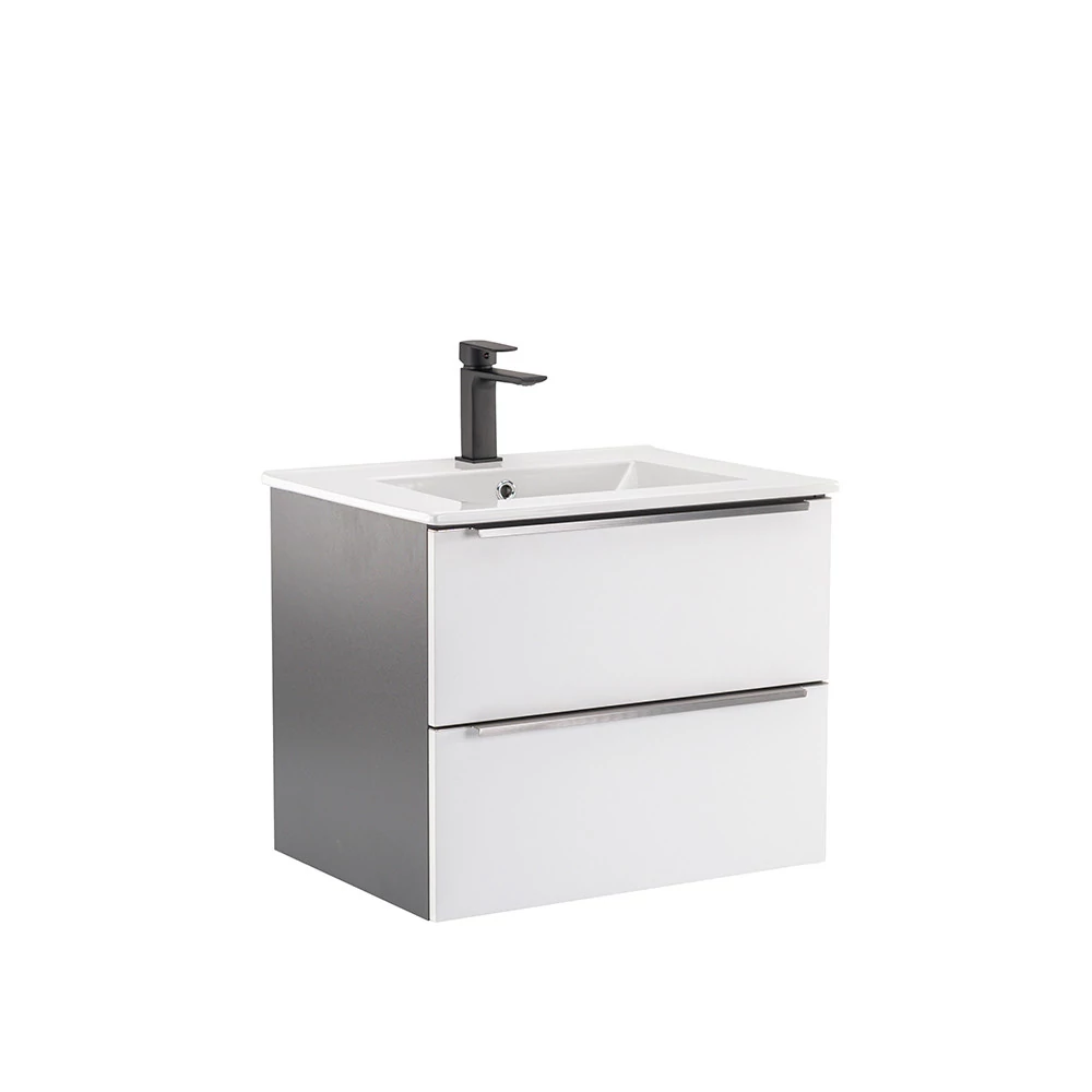A Vario Trim 60 komplett fürdőszobabútor egy stílusos és praktikus választás modern fürdőszobához. Kompakt méretei ideálisak kisebb és közepes méretű fürdőszobákba is, és a fém fogantyú profil patinás hatást, az antracit-fehér színű dizájn elegáns megjelenést kölcsönöz a térnek. A csillapítós fiókzáródás és a felfüggesztett kivitel a kényelmet és könnyű tisztántartást szolgálja, míg a minőségi anyagok hosszú élettartamot biztosítanak.