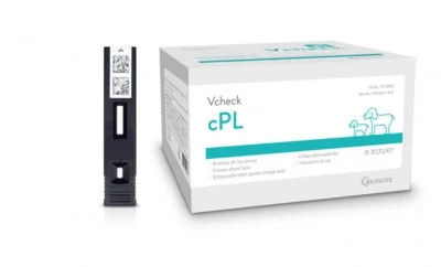 A BIONOTE Vcheck cPL egy in vitro diagnosztikai tesztkészlet kutya hasnyálmirigy-specifikus lipáz koncentrációjának kvantitatív mérésére a kutya szérumban.