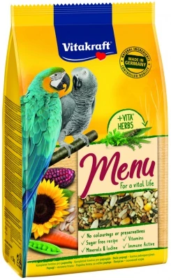 Összetétel: Gabonafélék (vörös kukorica 4%), vetőmagok 27.7% (napraforgómag 20.6%), ásványi anyagok, zöldségek (bors, szárított 1.5%, sárgarépa, szárított 1%), mogyoró 1%, növényi eredetű származékok, méz 0.02%, olajok és zsírok, élesztő (béta-glükán 80mg/kg).
