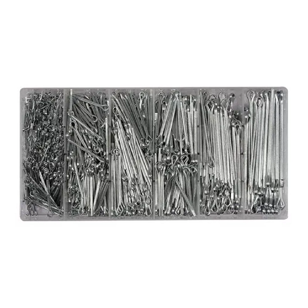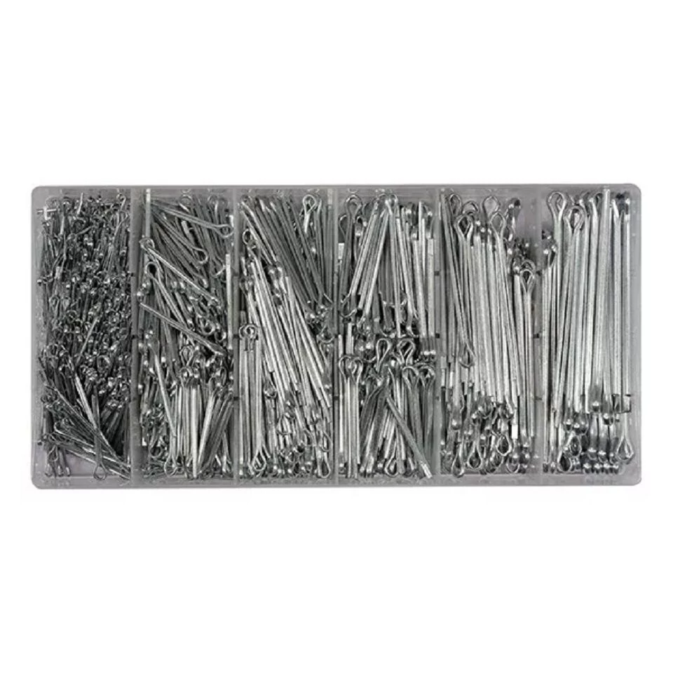 1000 db acéllemez biztonsági szeg készlet alkatrészek rögzítésére, különbözõ méretekben. A sasszegek kis, de annál fontosabb elemei a szerkezeteknek, amelyek biztonságosan rögzítik a különbözõ alkatrészeket. A YT-06885 készlet lehetõvé teszi, hogy mindig a megfelelõ méretû sasszeg álljon rendelkezésre, ami csökkenti a munkaidõt és növeli a hatékonyságot.Praktikus visszazárható szortimenterben szállítjuk.Tartalmaz:- 380 db: 1.5x25 mm- 240 db: 2.4x25 mm- 140 db: 2.4x38 mm - 115 db: 3x32 mm- 75 db: 3x50 mm- 50 db: 4x60 mm