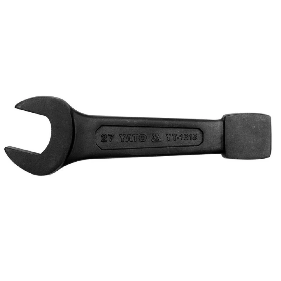 A YATO YT‑1619 egy professzionális, ütve használható villáskulcs, amelyet nehéz igénybevételre terveztek. A precízen kovácsolt króm-vanádium acélból készült eszköz kiválóan ellenáll a mechanikai terhelésnek, a fekete foszfát bevonat pedig fokozza korrózióvédelmét. A hosszú, 225 mm-es nyél és a 41 mm-es nyílás ideális nagy csavarok, anyák lazításához, különösen szűk helyeken. Ütvefúróval vagy kalapáccsal használva az ütvefúrás elv alapján plusz nyomatékot biztosít, így jelentősen megkönnyíti a makacs kötésekkel végzett munkát.