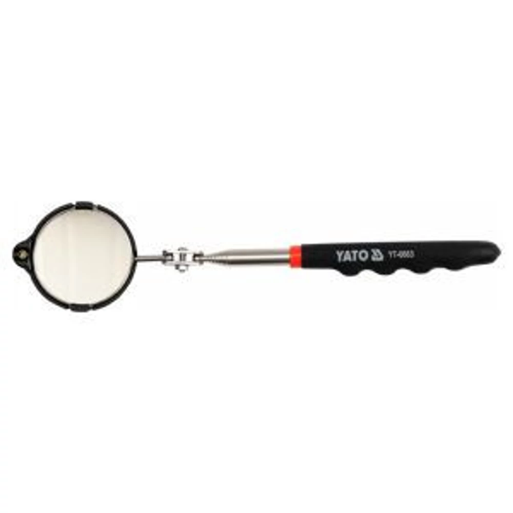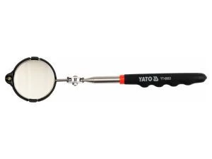 A YATO ellenõrzõ tükör nagy segítség karbantartó központok, autószerelõk, hegesztõk számáraLehetõvé teszi az autó, gép, berendezés, stb.megközelíthetetlen, rejtett elemeinek megtekintését, vagy varrat ellenõrzést a fal és a csõ köztA tükör egy 0,6 mm vastagságú tükörpolírozott acéllemezbõl készült, teleszkópos rúdra szerelt, csuklós rögzítésselA szerszámot korrózióálló bevonattal látták el, puha anyagból készült ergonomikus fogantyúval rendelkezikA teleszkópos kar hossza akár 920mm, a tükör mérete 54mm A beépített led lámpa segíti és könnyíti az eszköz használatát.