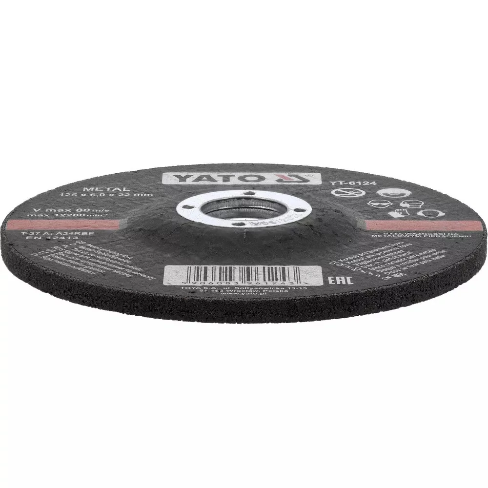 A YATO YT-6124 egy fém tisztítótárcsa, amelyet kifejezetten sarokcsiszolókhoz terveztek. Az M14-es menet kompatibilis a legtöbb szabványos géppel, míg a 86×125 mm-es méret ideális választás rozsdás, festett vagy szennyezett fémfelületek gyors és hatékony tisztításához.