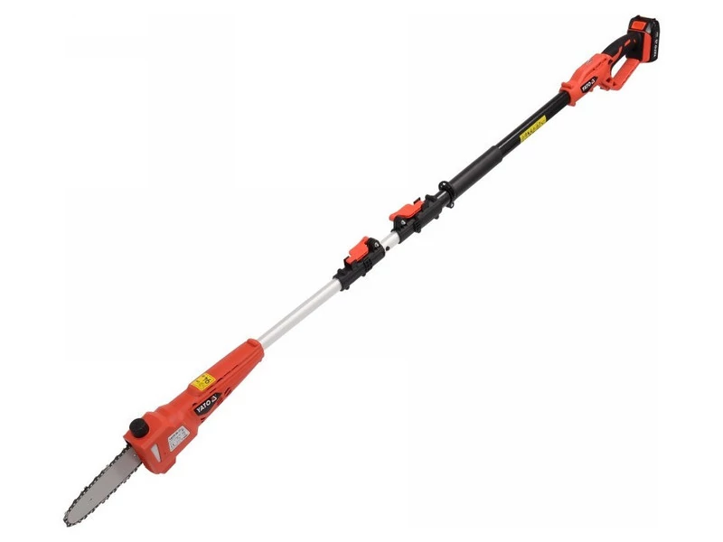 YATO Akkus magassági ágvágó 2-2,8 m 18 V (1 x 2,0 Ah akku + töltő) Az eszközt a Yato Premium szolgáltatás fedi: A teleszkópos rúdon lévő fűrész lehetővé teszi a fák és magas bokrok gondozását létra használata nélkül. 3-5 méteres szinten történő vágásra alkalmas, ezáltal a gallyak eltávolítása biztonságos és kényelmes. A könnyű súly és a megfelelő egyensúly kényelmes munkavégzést és a gallyak vágását biztosítja még jelentős vastagságban is, lánc beszorulás és visszarúgás nélkül.hosszú, magasságban állítható rúdautomatikus lánc kenésszerszám nélküli láncfeszítéskompakt méretű fejösszehajtható, könnyen szállíthatóeszköz hossza: 200-280 cmvédelem az akkumulátor cellák túlmelegedése ellencsúszásgátló fogantyú4 fokozatú akkumulátor töltöttségjelző18 V rendszer – működik egy közös akkumulátorral, ami illeszkedik a sorozat többi eszközéhezkülön vásárolható tartalék akkumulátorok: 2 Ah (YT-82842), 3 Ah (YT-82843), 4 Ah (YT-82844) és 6 Ah (YT-82845)A csomag tartalma: trimmer, Li-Ion 18 V 2 Ah akkumulátor, gyorstöltő (1 óra a 2 Ah akkumulátor számára).Szerszám akkumulátor és töltő nélkül is kapható - YT-82837. 18 V RENDSZERAz 18 V rendszer a YATO cég akkumulátorral működtetett eszközeinek sorozata, amelyek ugyanazzal az tartós akkumulátorral működnek. Megvásárolhatja az eszközöket akkumulátorral és gyorstöltővel együtt, vagy szólóban, ami ideális, ha bővíteni szeretné a szerszámkészletét.Az akkumulátorral működő eszközök nagyobb szabadságot és kényelmet biztosítanak. Ezenkívül a YATO akkumulátoros eszközei tartósak, kézreállóak és tökéletesen kiegyensúlyozottak, így a munkavégzés öröm.Profizmus Energia, modernség, kifinomult megoldások – mindezt kínáljuk az 18 V eszközök sorozatában, amelyet a legigényesebb felhasználók és szakemberek számára hoztunk létre.Megtakarítás Nincs szükség több akkumulátor és töltő megvásárlására több eszközhöz. Az 18 voltos rendszerrel pénzt, helyet otthon és a környezetet takarít meg!Választék Amikor az igényei növekednek, a 18 V-os gyűjtemény is növekszik. Széles választékban kínálunk eszközöket otthonra, műhelybe és kertbe, így létrehozhatja a szükséges készletet.