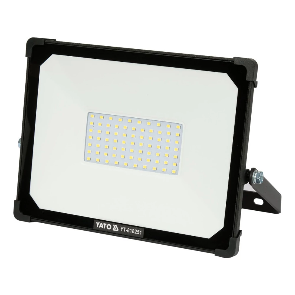YATO Elektromos SMD LED reflektor 50 W Lapos reflektor hatékony SMD LED-ekkel és IP65 ajánlott kültéri világításra - épület homlokzatok, lépcsők, bejárati utak, garázsok, raktárak. IP65 - porbiztos védelem, védelem a vízsugár ellen (12,5l/perc) bármely oldalról a házra öntve). Paraméterek: Méretek: 232x207.5x32 mm anyag: alumínium típus: SMD LED fényforrás: 75 LED fényáram: 4750 lm színhőmérséklet: 6500 K színvisszaadási index CRI Ra: ? 80 élettartam: 30000 óra súly: 0.9 kg feszültség: 230 V a.c. teljesítmény: 50 W kábel hossza: 0.20 m védelmi besorolás: IP65 frekvencia: 50/60 Hz kábel keresztmetszet: 3Gx1 mm2 kábel szigetelésének típusa: H05RN-F árnyékoló anyaga: edzett üveg teljesítménytényező: 0.9 min. szerelési magasság: 3 m
