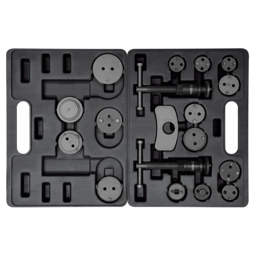 YATO Fékmunkahenger szerelő készlet 18 részes Egy profi 18-elemes kézi féknyereg-szeparátor készlet. Használati figyelmeztetések: Figyelem! Mindig használjon személyes védőfelszerelést a munka során.