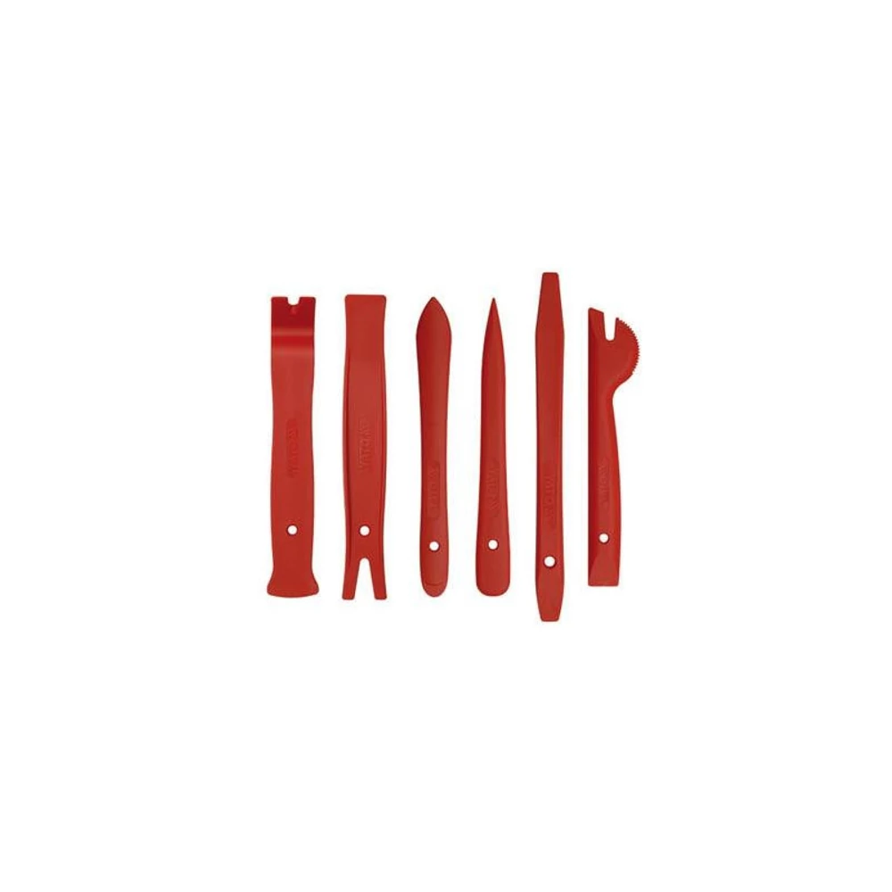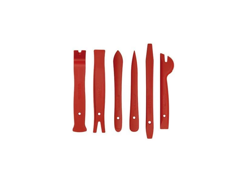 YATO Kárpitkiszedő készlet 6 részes Szakértői mandzsetta bútor és autó rácsok szétbontására. A készlet hat elemet tartalmaz, amelyek lehetővé teszik bármilyen autó belső kárpitjának gyors szétszedését. A készlet elemei edzett nylonból készülnek. Speciális profiljaik lehetővé teszik karok használatát a kárpit mandzsetták szétszedésekor. A készlet nagy előnye, hogy nem okoznak karcolásokat a kárpiton és a lakkozott elemeken. Ez nagy hatással van az autó megfelelő esztétikájának megőrzésére. Használati figyelmeztetések: Figyelem! Mindig használjon személyes védőfelszerelést munka közben.