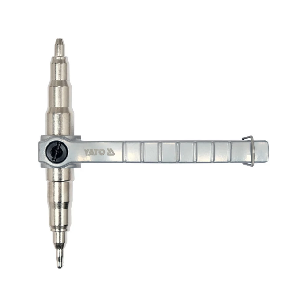 YATO Kézi csőperemező 1/4"-7/8" Az expander az ön kéznyomására a rézcsövek végét tágítja. A csipesz fogantyúja állandóan csatlakozik az expanderhez, ami lehetővé teszi a kényelmes egykezes működtetést. A következő átmérőjű csövekkel dolgozhat: 1/4", 5/16", 3/8", 1/2", 5/8", 3/4", 7/8" 6, 8, 9, 10, 12, 16, 19, 22 mm .