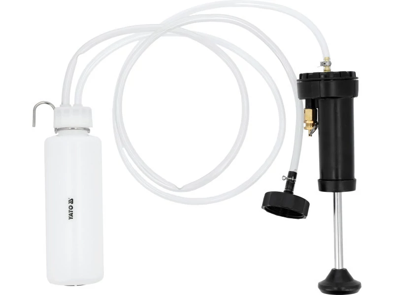 YATO Pumpás fékfolyadék cserélő, légtelenítő készlet 12 részes Készlet a fékrendszer feltöltéséhez és szellőztetéséhez. Nincs szükség külső energiaforrásra - egyszerűen töltse fel a tartályt és pumpálja. A nyomástartomány lehetővé teszi a készlet ABS rendszerekkel történő használatát. egy személy rövid idő alatt le tudja cserélni a folyadékot tartály kapacitása: 400 ml max. levegőnyomás 1.37 bar nyomásszabályozó szelep: 20 psi 45 mm-es foglalattal szerelve, amely a legtöbb európai modellhez megfelel anyaga: HDPE
