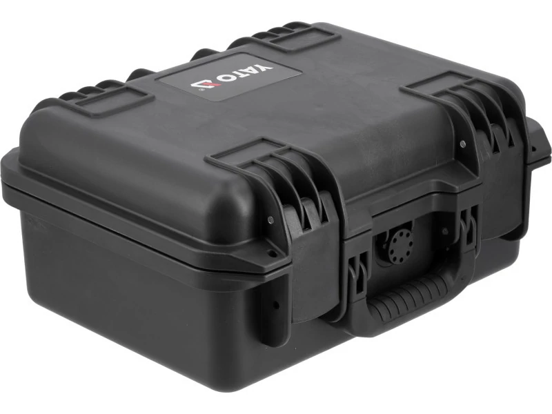 YATO szerszámkoffer habszivacs betéttel 360 x 290 x 165 mm A tok légtömör, vízálló és porálló, ellenáll sok vegyi anyagnak és korróziónak. Rugalmas polipropilénből készült, az IP55 ellenállási osztály szerint. Hatékony tömítőrendszert tartalmaz, amelyet dekompressziós szelep egészít ki a nyomás kiegyenlítésére a légi szállítás során. Zárral zárható. A tok belsejét elővágott szivaccsal töltötték ki, amelyet speciális termékek, például szerszámok, fényképezőgépek vagy mérőeszközök mélyedéseinek modellezésére készítettek elő. Méretek: külső: 360x290x165 mm belső: 330x234x152 mm falvastagság: 10 milliméter