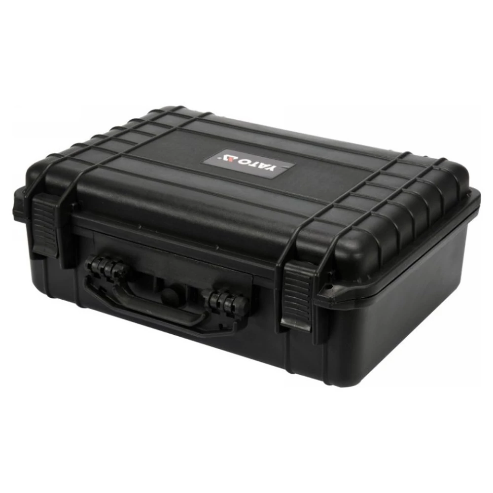 YATO Szerszámkoffer habszivacs betéttel 470 x 357 x 176 mm Hermatikus, vízálló és porálló tok, amely számos vegyi anyaggal és korrózióval szemben ellenálló. Rugalmas polipropilénből készült az IP55 ellenállási osztály szerint. Tartalmaz egy hatékony tömítési rendszert, amelyet dekompressziós szelep egészít ki a nyomás kiegyenlítése érdekében légitranszport során.Zárásra alkalmas zárral.A tok belső terét előre kivágott szivaccsal töltöttük ki, amelyet önállóan alakíthatsz ki a meghatározott termékek, például eszközök, fotóeszközök vagy mérőeszközök számára.A tokok kiválóan alkalmasak vízálló és sérülésálló szállítási konténereknek, például vitorlázás, terepmotorozás stb. számára.A megadott méretek a teljes külső méretek. A fal vastagsága kb. 10 mm. A nedvességtől, portól és mechanikai sérüléstől való védelemre szoruló eszközök tárolására és szállítására.