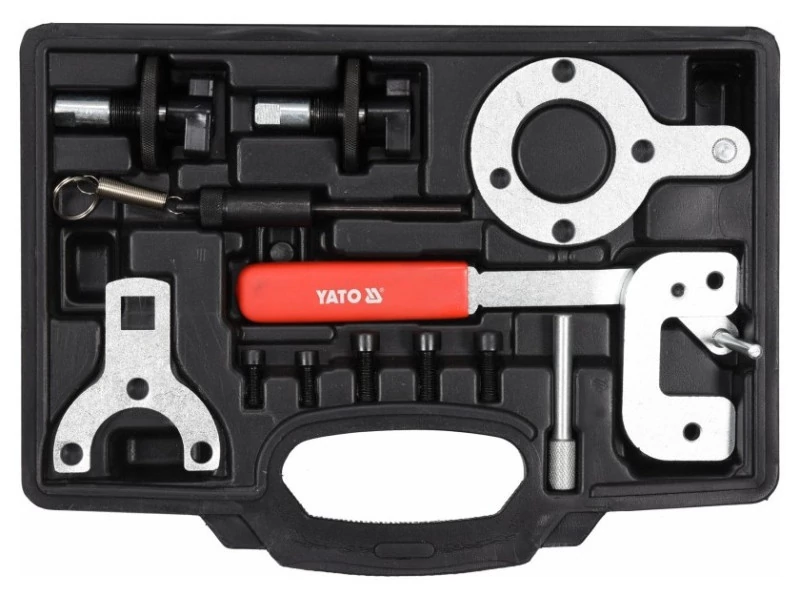 YATO Vezérlés rögzítő készlet 12 részes (Diesel) Ford Fiat Suzuki Opel Professzionális dízel motor szelepemelő szerviz készlet.tartalmazza a GMP beállító eszközt, a vezérműtengely eszközt, a feszítő görgőtűt és a rögzítő csavartkényelmes hordtáskában kaphatóDízel motorokhoz:Ford: 1.3 TDCiFiat Punto: 1.3 JTD MULTI-JET (2003 - 2007)Fiat Panda/Idea/Doblo: 1.3 JTD Multi (2003 - 2009)Suzuki Ignis/Wagon/Swift: 1.3 CDTI (2003 - 2010)Opel Corsa C/Combo C/Astra H/Tigra B/ Meriva (2003 - 2009)Motorok kódokkal: 188A9.000. 169A1.000, 188A8.000, 188A9.000, Z13DT, Z13DTJ Használati figyelmeztetések: Figyelem! Mindig használjon személyes védőfelszerelést munka közben.