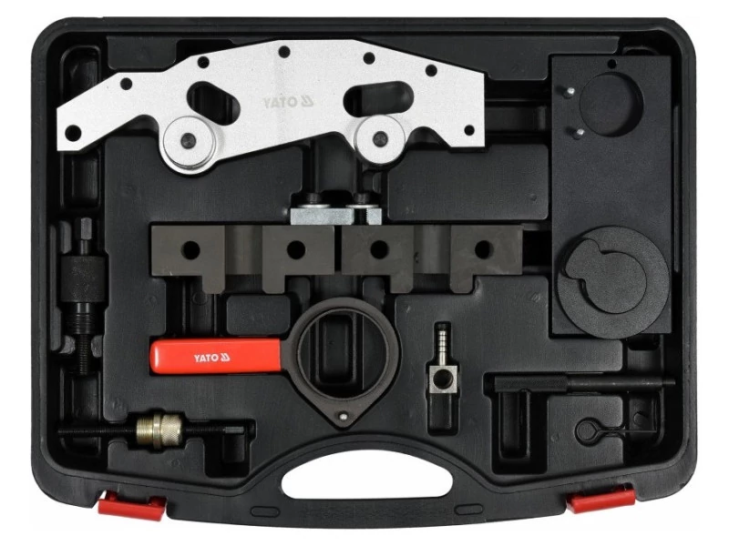YATO Vezérlés rögzítő készlet 9 részes (benzin) BMW A szettet a BMW járművek VANOS M42, M44, M50,M53, MS50US, S52US motorjainak időzítésének szervizelésére tervezték.Szett összetétele:nokkenytengely igazító eszközfogaskerék igazító eszközidőzítő fogaskerekekidőzítőlánc előfeszítő eszközfeszítő rögzítő tűsűrített levegő adapterBMW modellekhez: 316i, 318i, 320i, 323i, 325i, 328i, 330i, 518i, 520i, 523i; 258i, 525i, 728i, 730i Használati figyelmeztetések: Figyelem! Mindig használjon személyes védőfelszerelést a munka során.